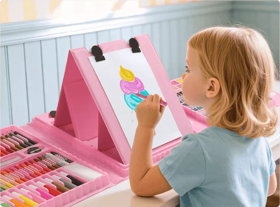 Este completo kit ofrece todo lo necesario para dibujar, colorear y pintar durante horas. Con 208 herramientas artísticas, los niños pueden experimentar nuevas técnicas mientras desarrollan su imaginación y habilidades manuales. Perfecto para actividades escolares, regalos o entretenimiento creativo.