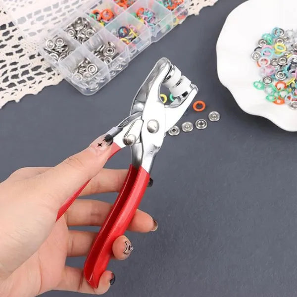 con este práctico alicate remachador, colocar botones y remaches nunca fue tan fácil. simplemente coloca el botón o remache en la herramienta, aprieta y listo, tendrás una fijación firme y duradera. perfecto para reparaciones rápidas en prendas de vestir o accesorios de tela.