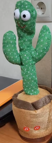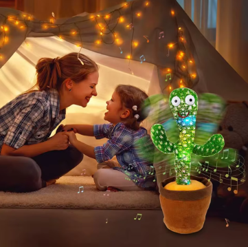 Este cactus no solo baila al ritmo de la música, ¡también repite lo que dices con una voz divertida! Perfecto para entretener a niños y adultos, su diseño suave y colorido lo convierte en un regalo ideal.