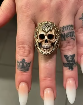 Luce con mis tatuajes esta muy lindo este anillo esta muy bien hecho