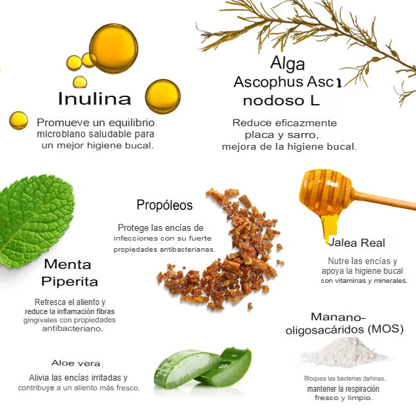 Beneficios: Reduce placa, combate el sarro, mejora el aliento·