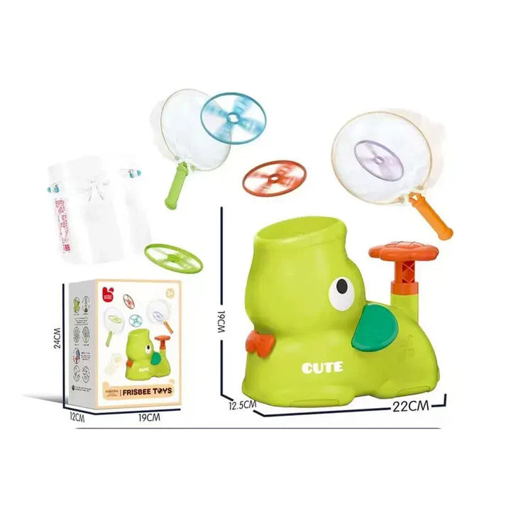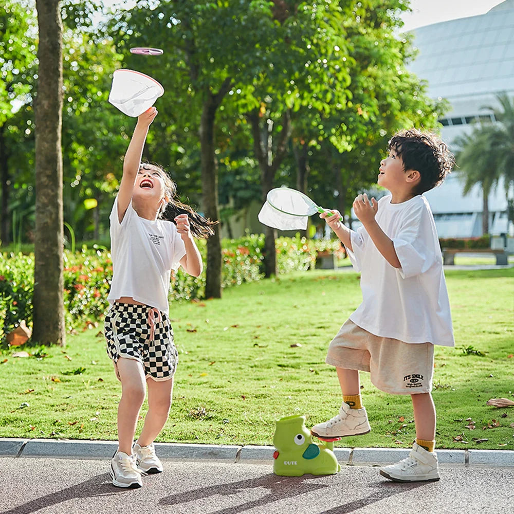 Incluye un lanzador de discos voladores que dispara a gran velocidad y un adorable elefante atrapamariposas, donde los niños deben capturar mariposas giratorias mientras se mueven. Perfecto para jugar al aire libre o en casa. ¡La combinación perfecta de movimiento, coordinación y diversión! 🧒👧