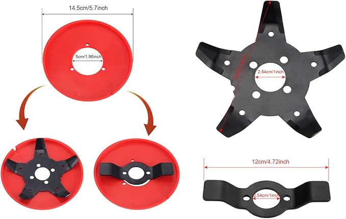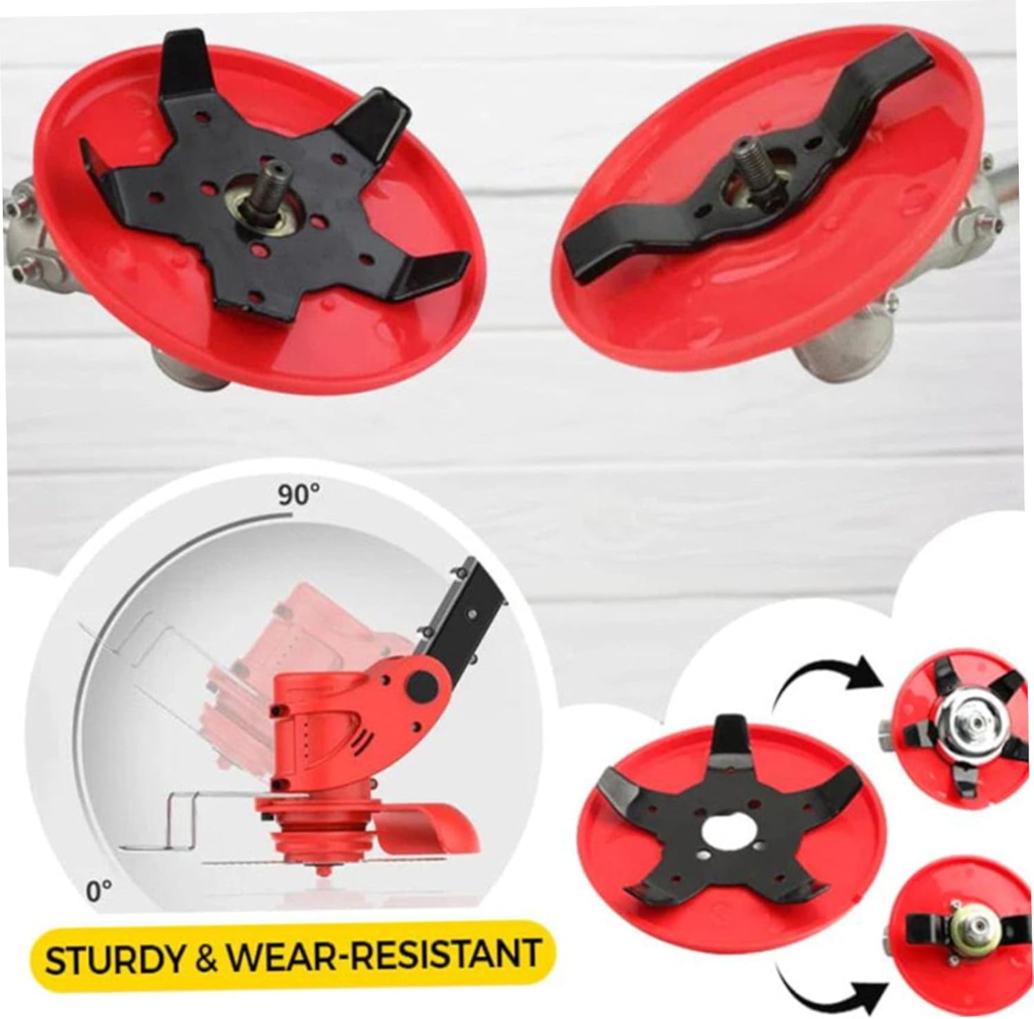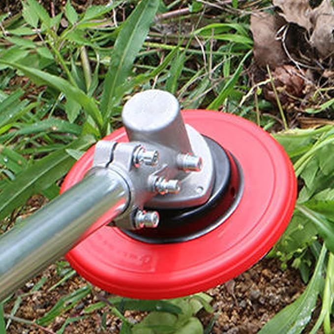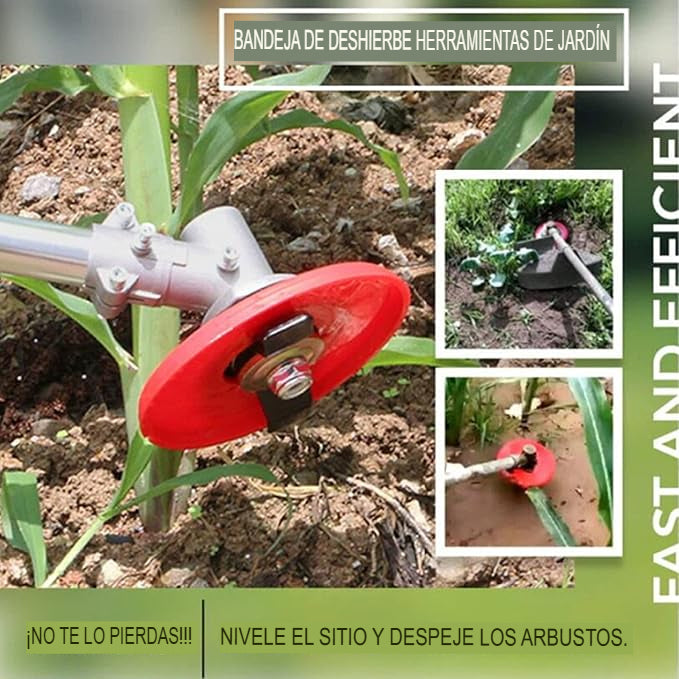 Disco de podadora con plato, diseñado para cortar césped, maleza y arbustos con facilidad.