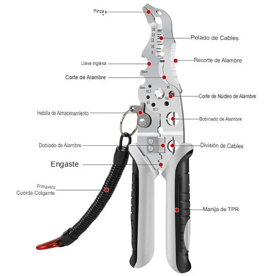 herramienta compacta y versátil que combina un alicate resistente con funciones adicionales. ideal para el hogar, trabajo y aventuras, ofreciendo practicidad y eficiencia en un solo diseño.