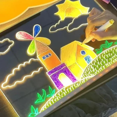 ¡La creatividad cobra vida con esta tableta LED y marcadores neón!