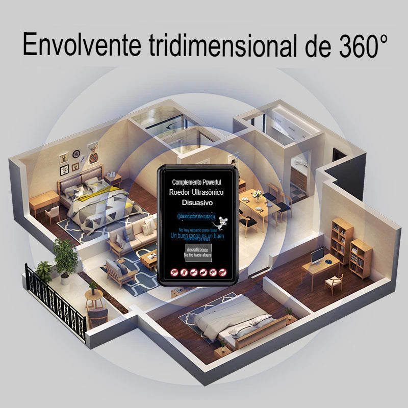 Este repelente ultrasónico emite frecuencias que afectan el sistema nervioso de insectos y roedores, alejándolos de tu espacio.