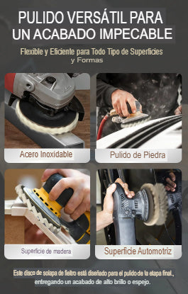 Lleva tus proyectos al siguiente nivel con estos discos de polichado. Versátiles y resistentes, son perfectos para eliminar rayones, restaurar brillo y lograr superficies suaves al tacto.