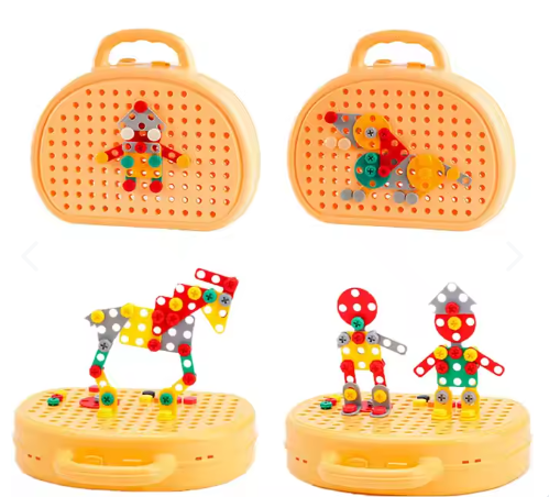 el juego de construcción puzzle con taladro de 203 piezas es la combinación perfecta de diversión y aprendizaje. incluye un taladro funcional y piezas coloridas para crear figuras, estructuras y puzzles únicos, desarrollando creatividad y habilidades motoras.