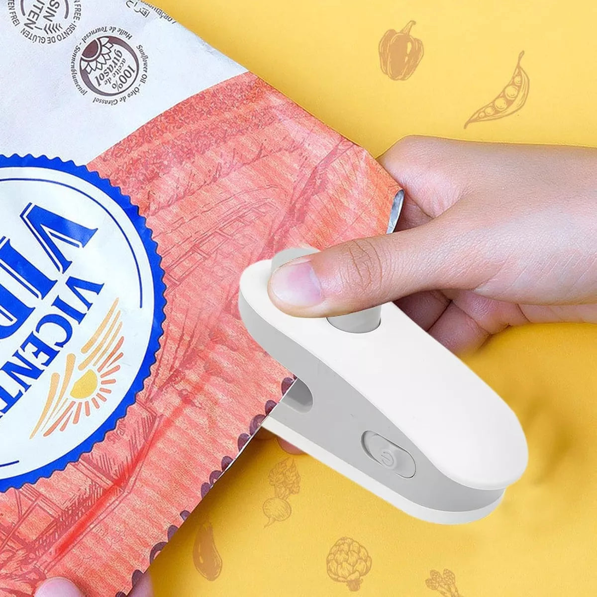 El sellador de bolsas es una herramienta portátil y compacta que te permite cerrar herméticamente cualquier empaque plástico en segundos.