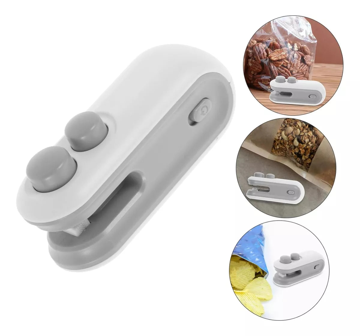 Perfecto para conservar alimentos, snacks, frutas secas, café, y más. Funciona con calor al pasar suavemente por el borde de la bolsa.