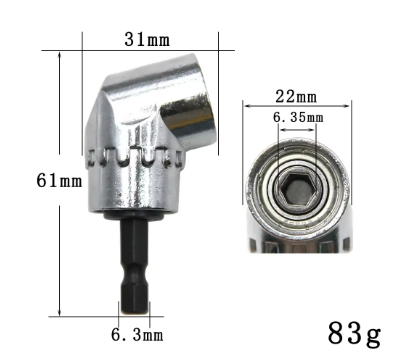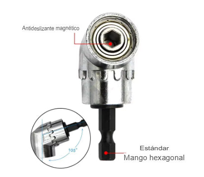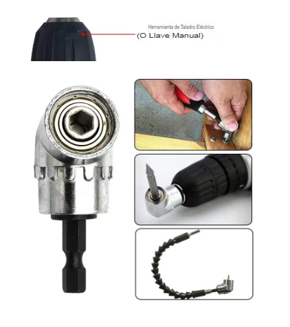 herramienta esencial para cualquier proyecto de bricolaje o profesional. este accesorio angular para taladros te permite atornillar y desatornillar en posiciones imposibles de alcanzar con herramientas tradicionales. compatible con la mayoría de los taladros estándar.
