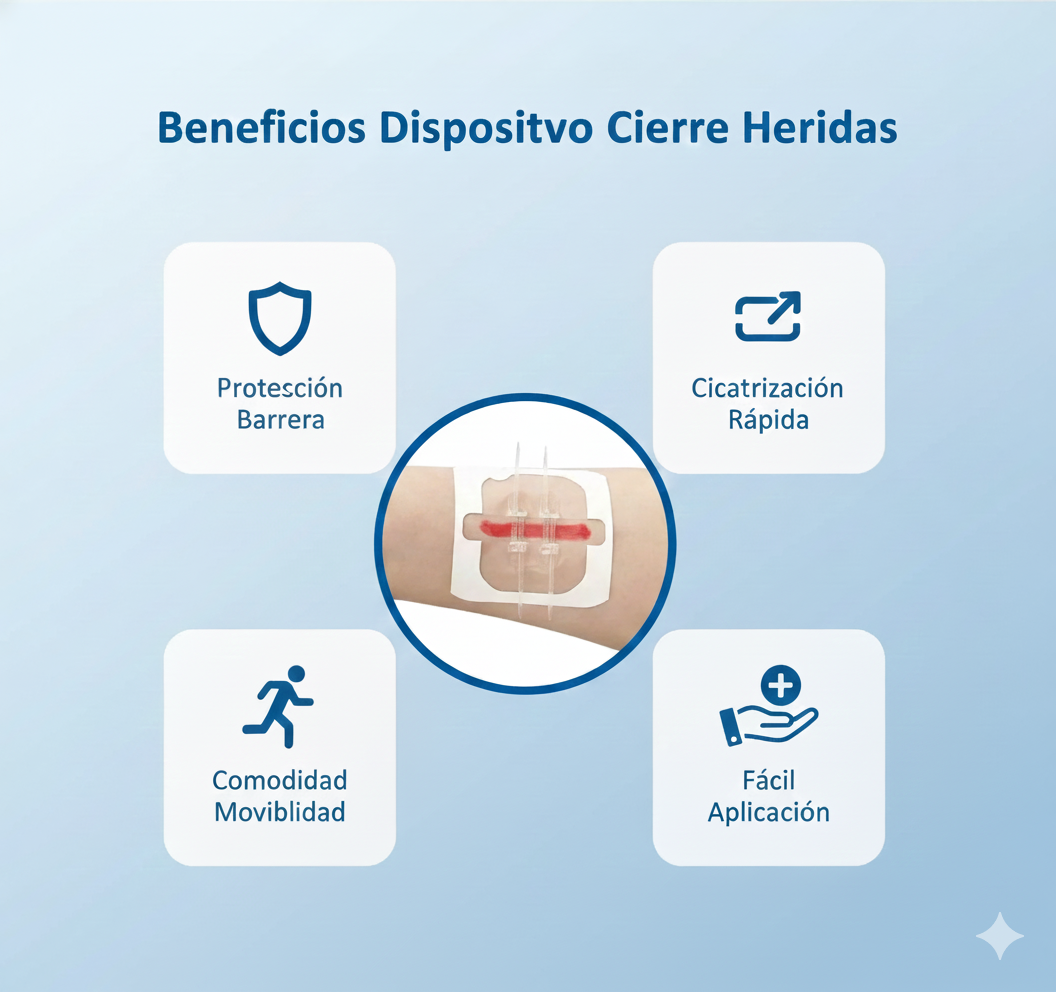 Cierre rápido: cierra heridas en segundos sin necesidad de suturas.